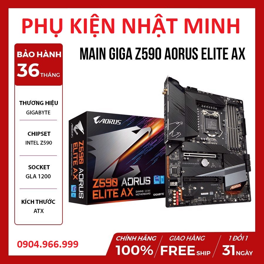 Máy tính & Laptop > Linh Kiện Máy Tính > Mainboard - Bo Mạch Chủ || Mainboard Gigabyte Z590 AORUS ELITE AX (Intel Z590, Socket 1200, ATX, 4 khe Ram DDR4) CHÍNH HÃNG BH 36 THÁNGCòn hàng