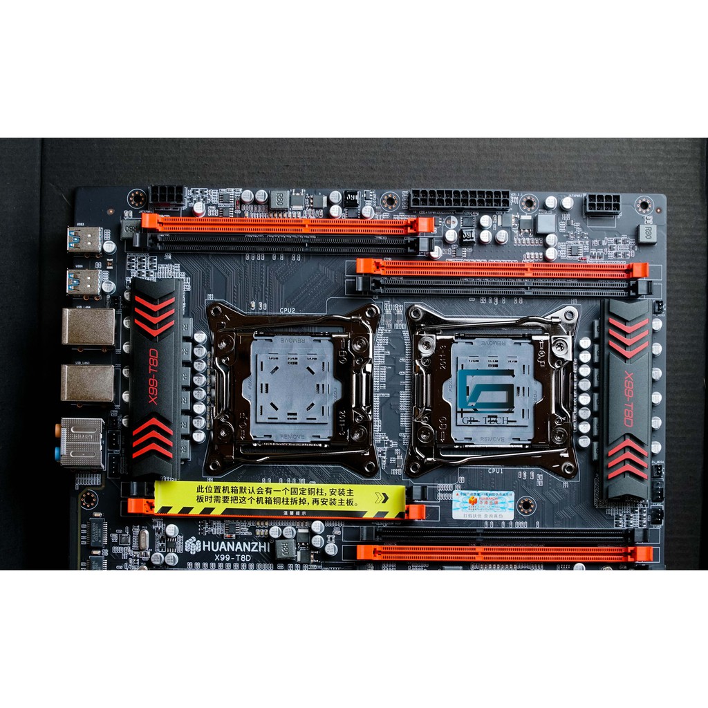 GIỚI THIỆU SẢN PHẨM MAINBOARD HUANANZHI X99 DUAL T8DMainboard Huananzhi X99 Dual T8D là bo mạch chủ hỗ trợ chạy cùng lúc 2 bộ xử lý Intel Xeon socket LGA2011-3, với 8 khe lắp RAM DDR3