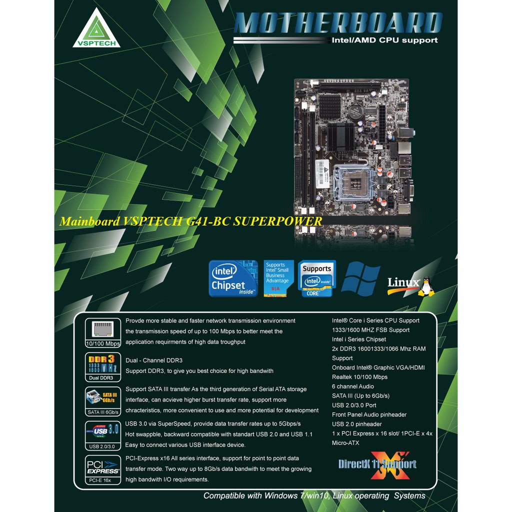 Máy tính & Laptop > Linh Kiện Máy Tính > Mainboard - Bo Mạch Chủ || Mainboard VSPTECH G41-BC SUPERPOWERCòn hàng