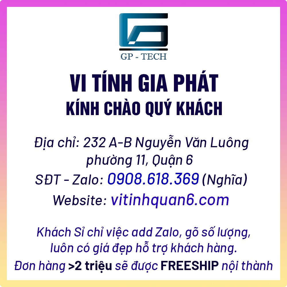 - Linh kiện được bảo hành tại vi tính Gia Phát, nhanh chóng và đảm bảo uy tín chuyên nghiệp cùng thái độ phục vụ tận tình.