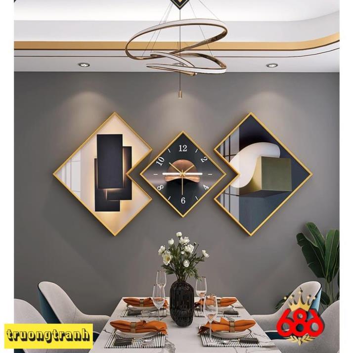 [Mall] Bộ tranh Đồng Hồ Treo Tường siêu sang, Đồng Hồ Treo Tường Phòng Khách Phòng Ăn, siêu sale, tặng đồ treo