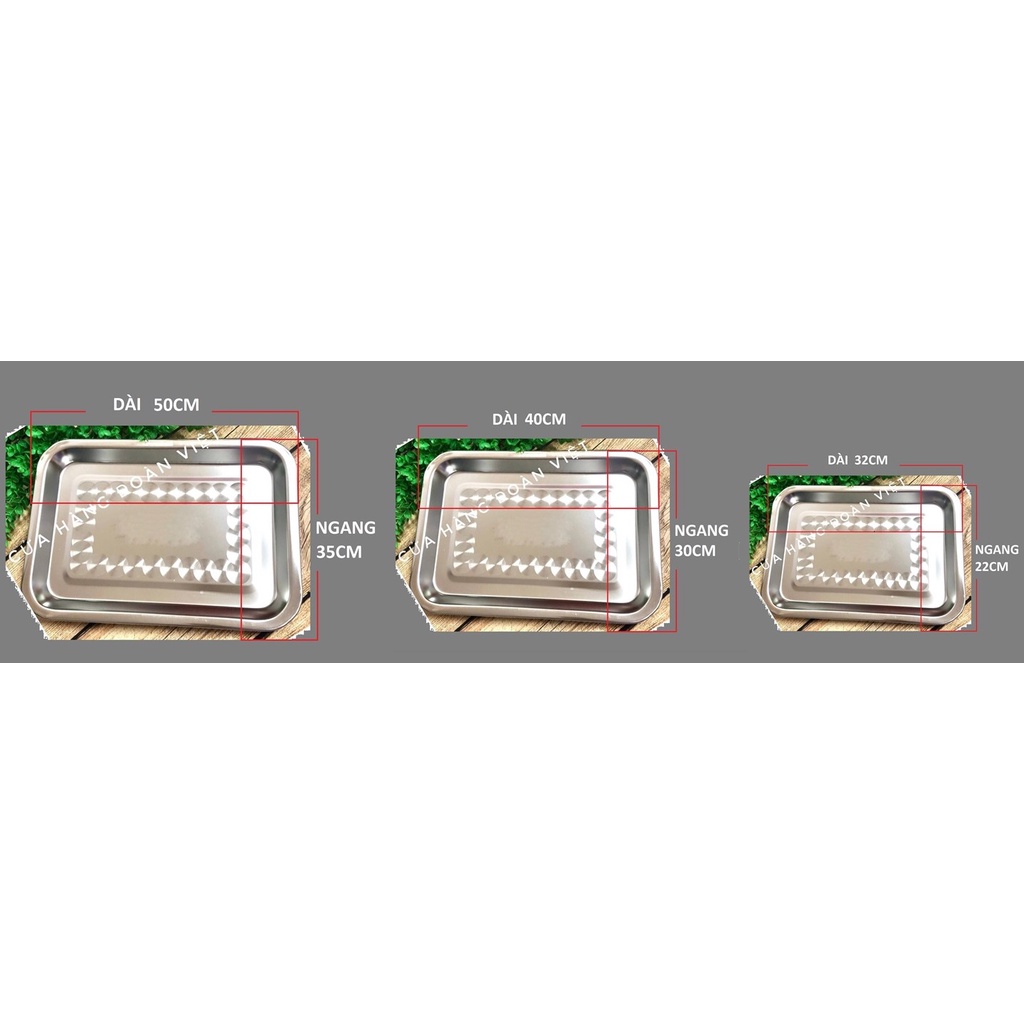 Mâm Inox SUS 304 Cao Cấp (Mâm cạn hình chữ nhật) - Cứng cáp, bền - Nhiều SizeChất liệu : Inox 304 cao cấp