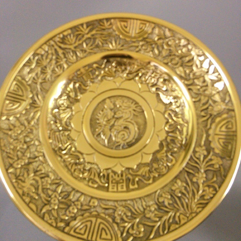 Mâm bồng 100% đồng vàng nguyên chất.Đường kính 25cm (kích thước lớn hơn hoặc nhỏ hơn ib để có giá cụ thể.