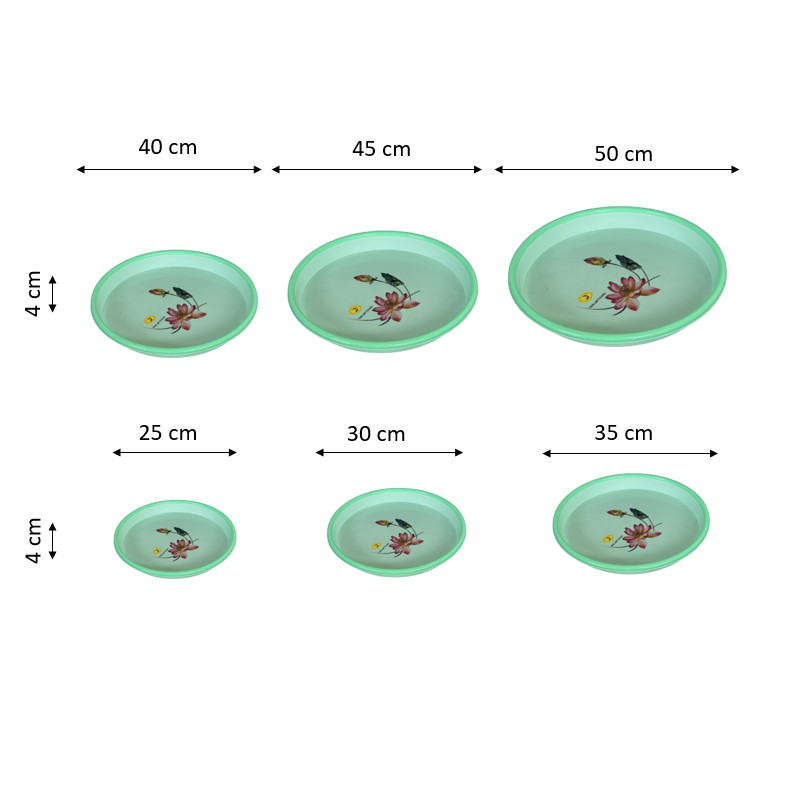 Mâm nhựa tròn có vành, kích thước 25 - 30 - 35 - 40 - 45 - 50 cm, 4 màu xanh, dương, đỏ, cam nhựa PP chính phẩm