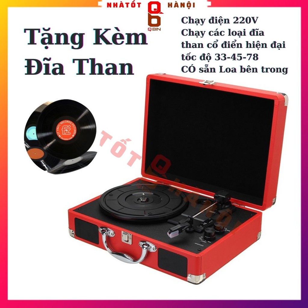 Mâm than đĩa nhựa vinyl LP đa năng dáng valy Chạy đĩa 33-45/78 có sẵn loa , nguồn điện AC 220V Decor Xịn Nge Nhạc Hay