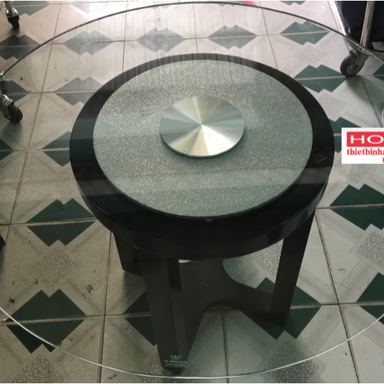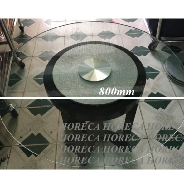Giới thiệu mâm xoay bàn ăn kim tuyến bạc Ø800mm phù hợp cho bàn ăn tròn Ø1,4m, kính trong suốt, sang trọng, quay rất êm, bền