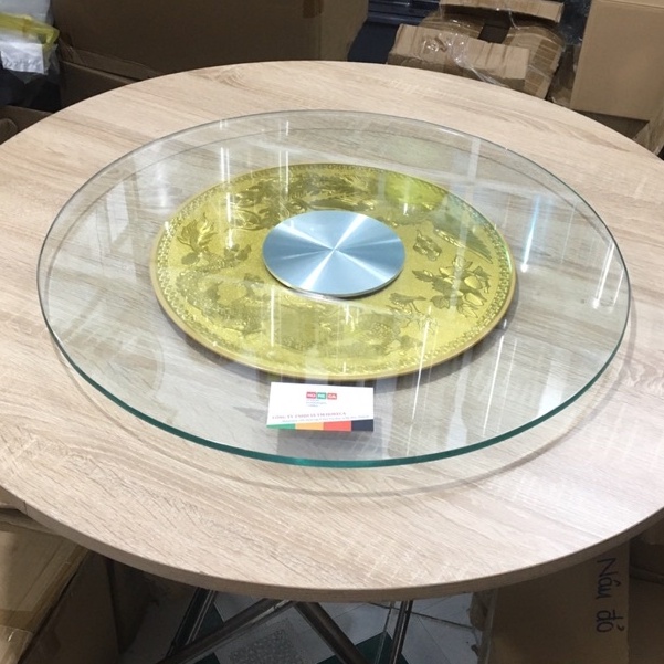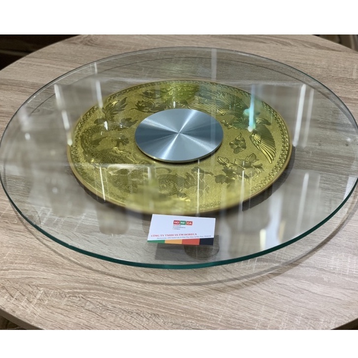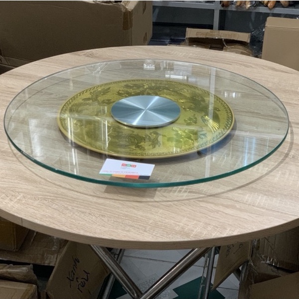 - Kích thước: mâm xoay sắt (Ø)38cm, Kính cường lực (Ø)80cm- Chất liệu: sắt, kính cường lực dày 10li, mài bóng cạnh