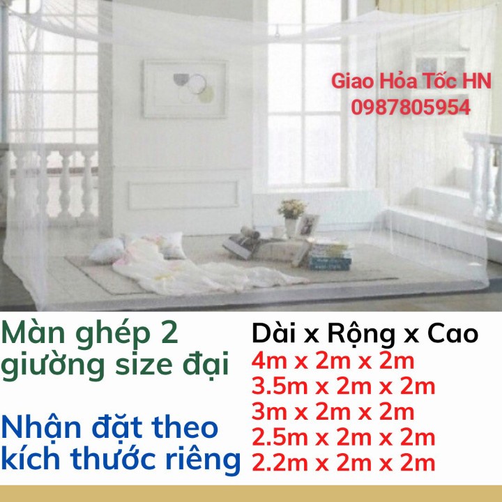 Màn 10/10 Ghép 2 Giường Đủ Kích Thước 4mx2m, 3.5mx2m, 3mx2m, 2.5mx2m, 2m2x2m - Màn Tuyn, Mùng Tuyn Ghép Giường Không Cửa