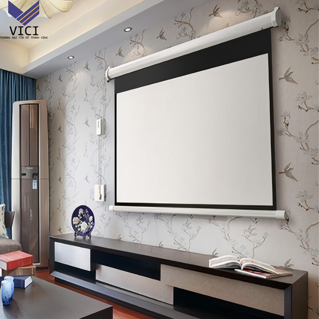 - Màn chiếu điện 120 inch lắp đặt dễ dàng, có thể treo cố định trên tường hoặc trên trần