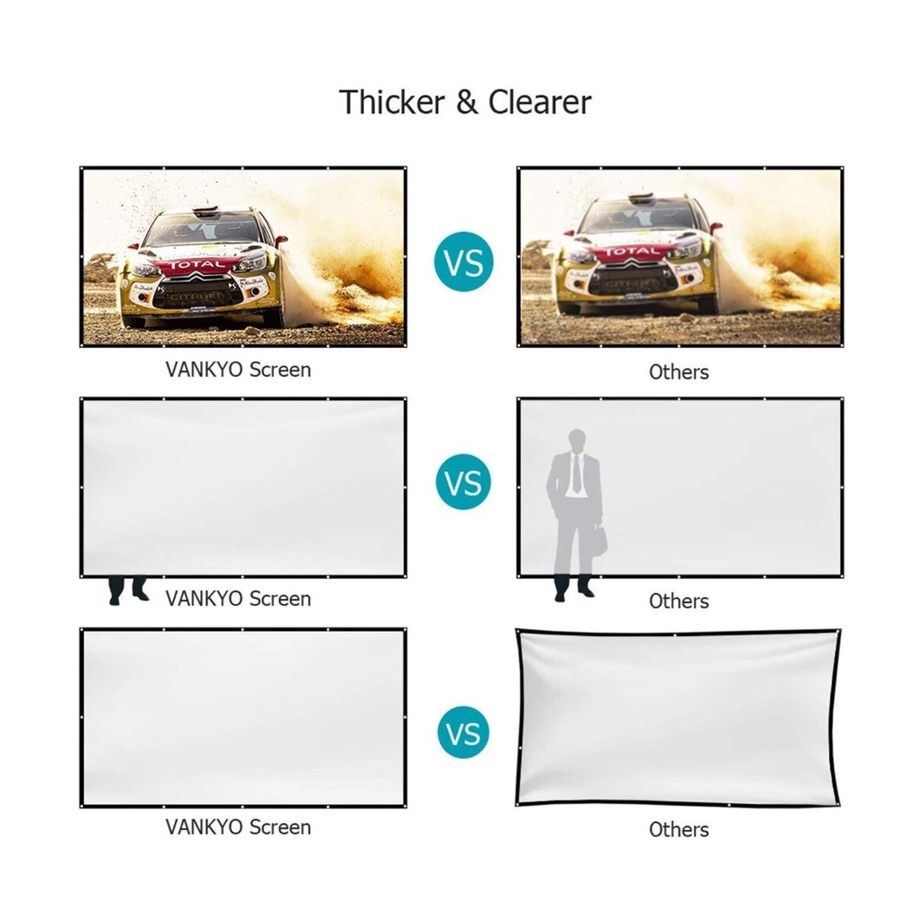 [BỀ MẶT CĂNG MỊN] Được làm bằng chất liệu polyester mềm dẻo, màn chiếu Vankyo mịn hơn và không có nếp gấp, mang lại cho bạn hình ảnh xem tuyệt vời.