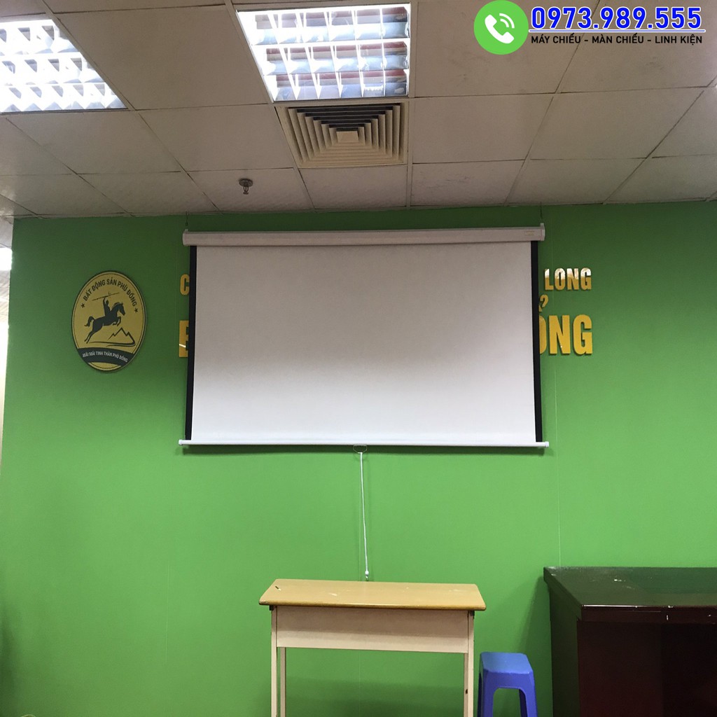 - Màn chiếu chuyên dụng treo tường, có thể dừng và chỉnh màn tùy ý bằng tay