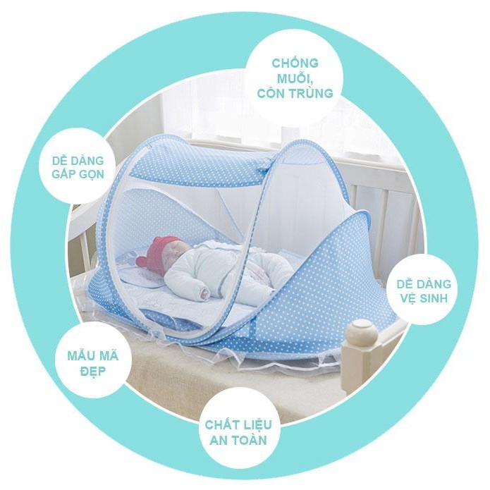 Đặc điểm nổi bật:- Màn Chống Muỗi Phát Nhạc Có Tấm Lót Em Ái Cho Bé được làm bằng chất liệu vải lưới nhỏ thoáng mát, vừa mang lại hiệu quả trong việc tránh côn trùng vừa đảm bảo không khí lưu thông trong màn giúp bé ngủ ngon. màn được thiết kế vô cùng thông minh như 1 chiếc giường di động giúp mẹ có thể vừa chăm sóc được giấc ngủ của bé vừa có thể làm việc nhà mà vẫn quan sát bé khi ngủ