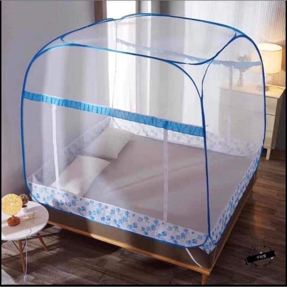 Nhà cửa & Đời sống > Chăn ga gối nệm > Mùng/ Màn chống muỗi || Màn chụp đỉnh vuông 1 chân viền lụa màu xanh cao cấp, Mùng ngủ tự bung 1m8x2m đình rộng gấp gọn chống muỗi hiệu quảCòn hàng