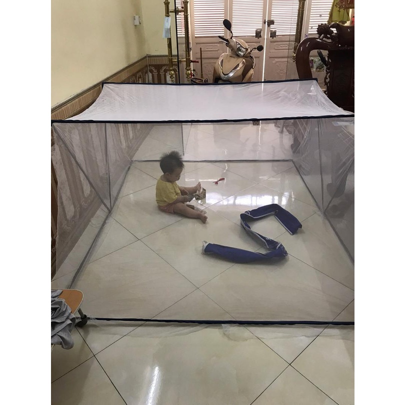 𝐌𝐚̀𝐧 𝐜𝐡𝐨̂́𝐧𝐠 𝐦𝐮𝐨̂̃𝐢 không đáy, được may cẩn thận, chần kỹ, sắc cạnh. Khung thép vững chắc, giúp màn chụp kín đáo tuyệt đối, bảo vệ em bé không bị lăn khỏi giường giúp mẹ yên tâm để bé nằm ngủ một mình.