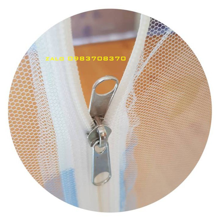 Chất màn tuyn cao cấp không nhăn không phai rất bền màn có 1 khóa cửa giúp ra vào mùng dễ dàng các góc màn đều có chun để cài vào đệm bạn có thể thoải mái nằm ngủ mà không lo muỗi chích
