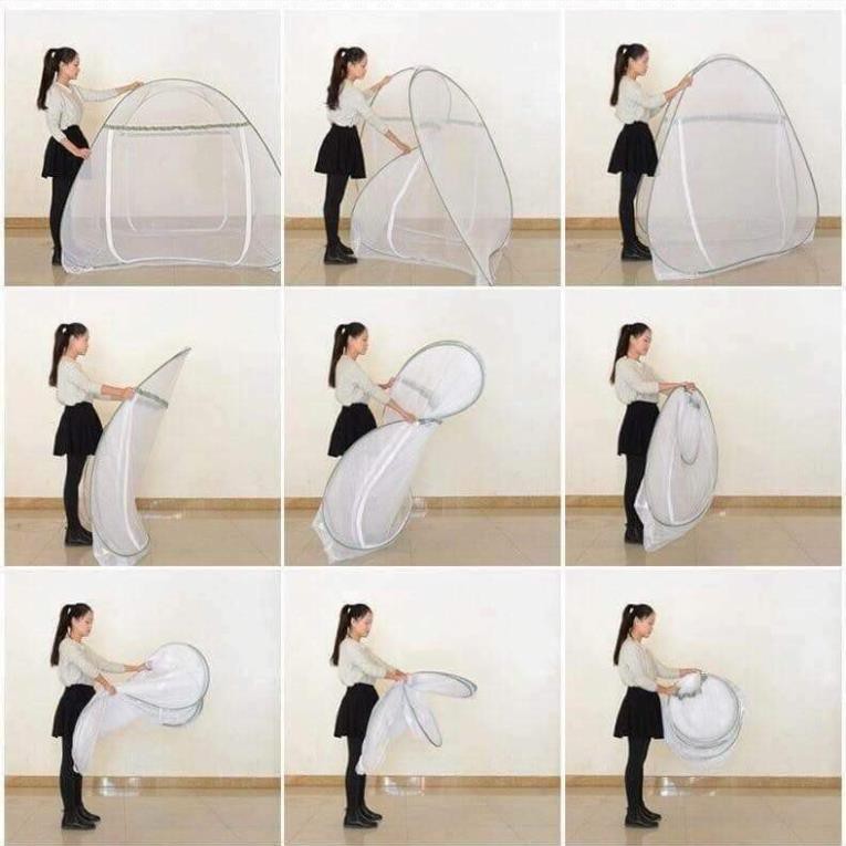 Màn chụp tự bung gấp gọn được thiết kế hoàn hảo đến từng chi tiết, phù hợp với mọi nơi, trong phòng ngủ, ngoài trời, hoạt động du lịch hoặc đi dã ngoại.... Chỉ cần những thao tác đơn giản mở khung là chiếc màn sẽ tự động bung ra vừa vặn và không hề nhăn nhúm. Đặc biệt màn chụp có thể được xếp gọn gàng không làm cho bạn mất thời gian, khung màn được làm từ hợp chất cực dẻo có thể gấp gọn, khi bung ra khung màn không hề làm biến đổi kiểu dáng của màn.
