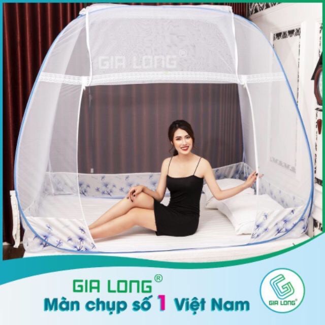 Giới thiệu Màn chụp tự bung chống muỗi Gia Long đỉnh vuông, màu trắng chân diềm hoa xanh hàng đẹp
