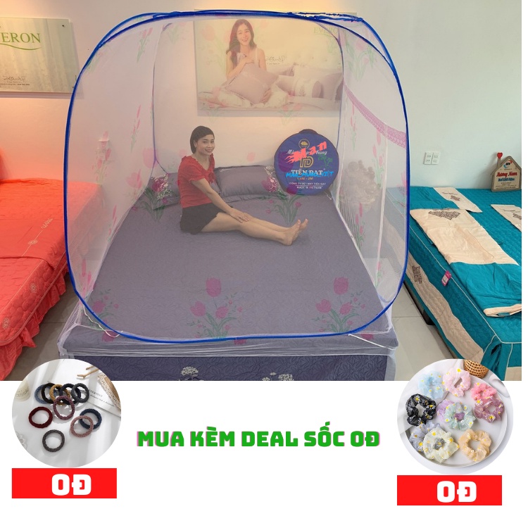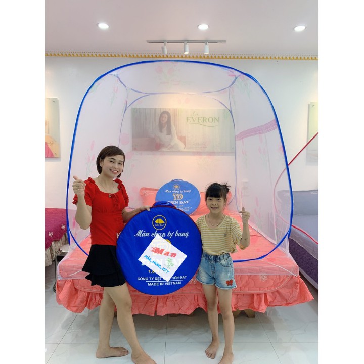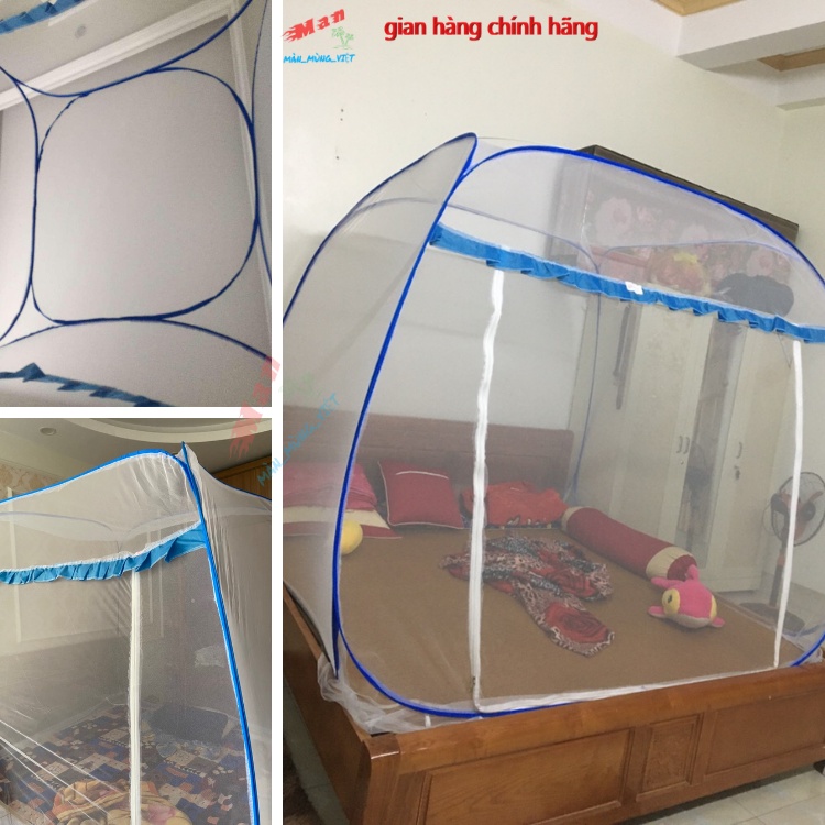 Màn chụp tự bung đỉnh rộng _đỉnh vuông loại 1 Việt Nam 1.6m-1.8m-2m cao 1m70 mùng chụp đỉnh rộng hàng đẹp