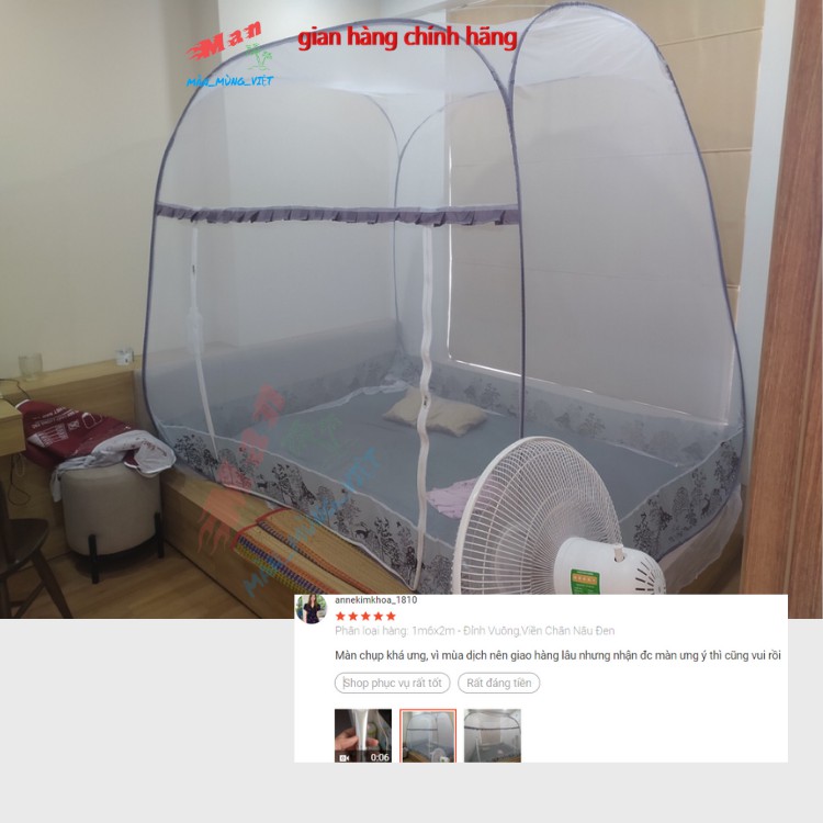 Giới thiệu Màn chụp tự bung đỉnh vuông có chân viền vải lụa cao cấp mùng chụp đỉnh lớn siêu bền đẹp