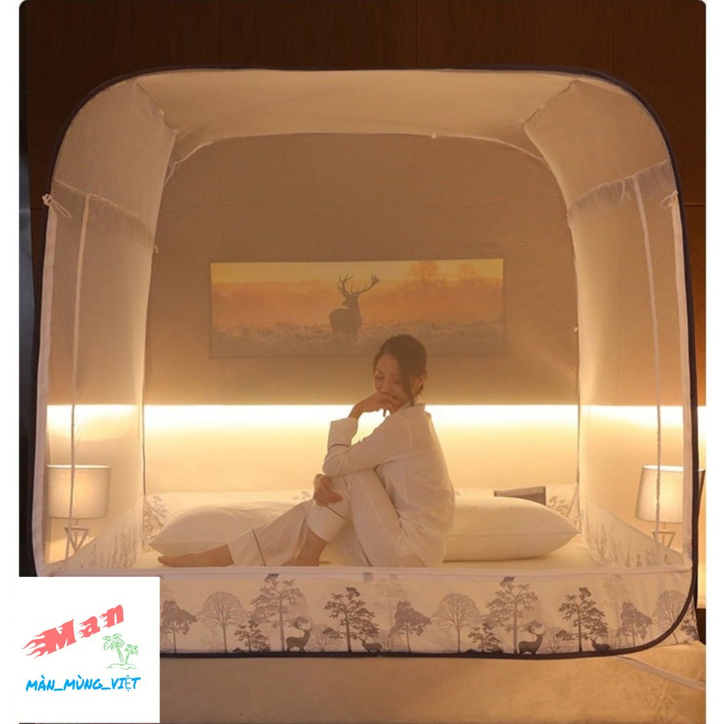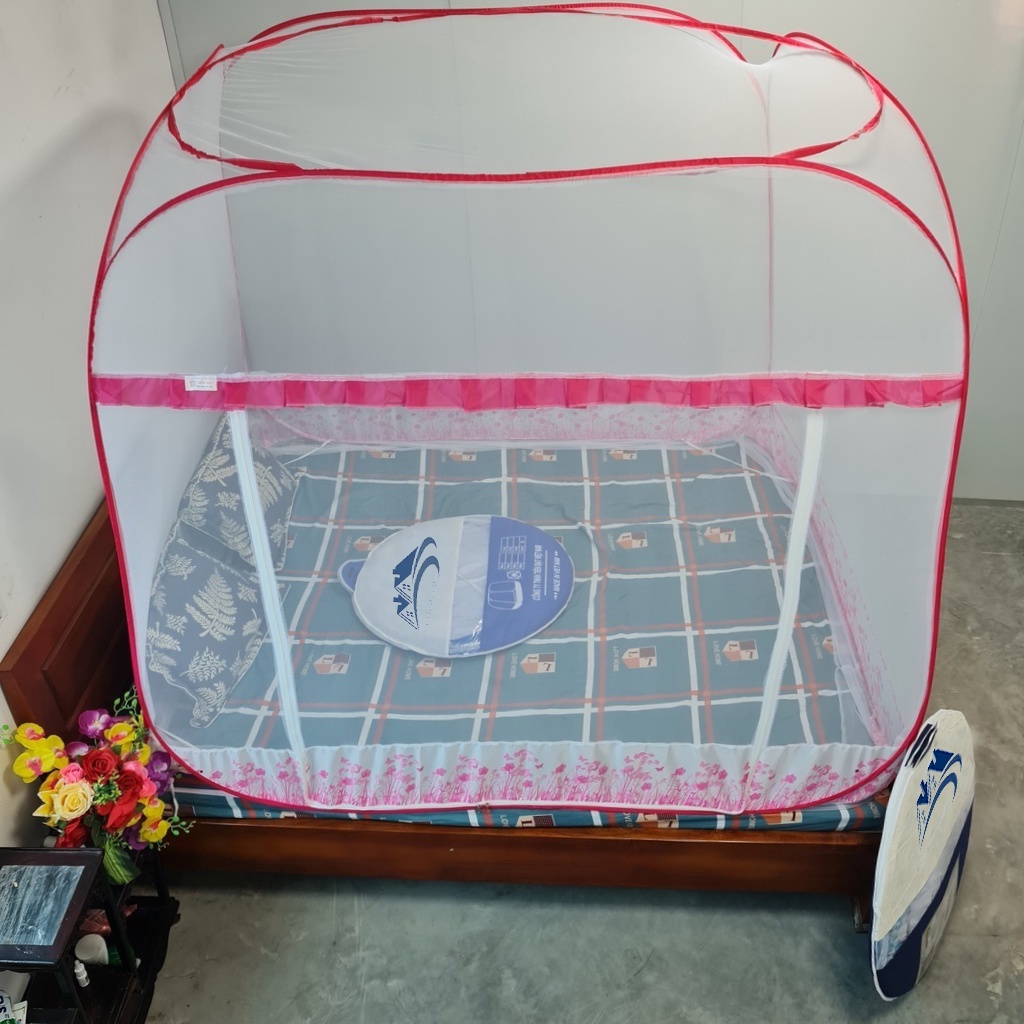 Nhà cửa & Đời sống > Chăn ga gối nệm > Mùng/ Màn chống muỗi || Màn chụp tự bung đỉnh vuông có chân viền vải lụa cao cấp mùng chụp đỉnh lớn siêu bền đẹpCòn hàng
