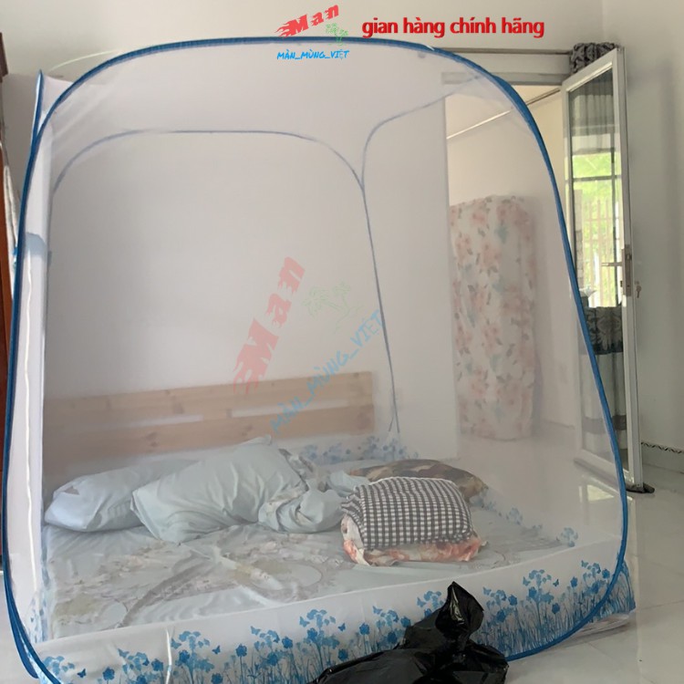 Màn chụp tự bung đỉnh vuông có chân viền vải lụa cao cấp mùng chụp đỉnh lớn siêu bền đẹp