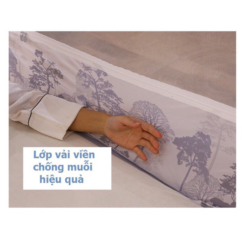 ➖ Màn không đáy, được may cẩn thận, chần kỹ, sắc cạnh. Kết hợp với 4 góc chun cài vào nệm và khung thép vững chắc, giúp màn chụp kín đáo tuyệt đối, bảo vệ em bé không bị lăn khỏi giường giúp mẹ yên tâm để bé nằm ngủ một mình.