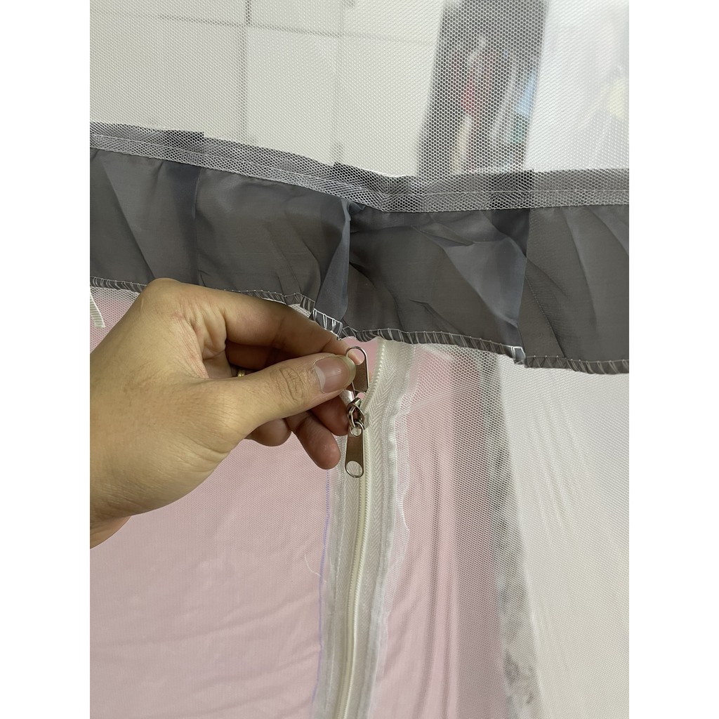 ➖ Màn không đáy, được may cẩn thận, chần kỹ, sắc cạnh. Kết hợp với 4 góc chun cài vào nệm và khung thép vững chắc, giúp màn chụp kín đáo tuyệt đối, bảo vệ em bé không bị lăn khỏi giường giúp mẹ yên tâm để bé nằm ngủ một mình.