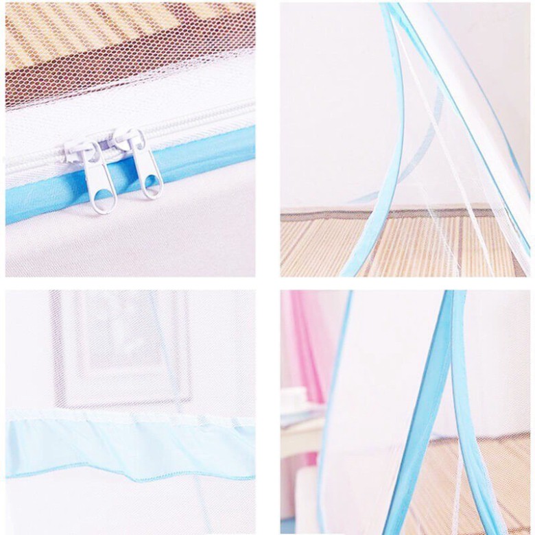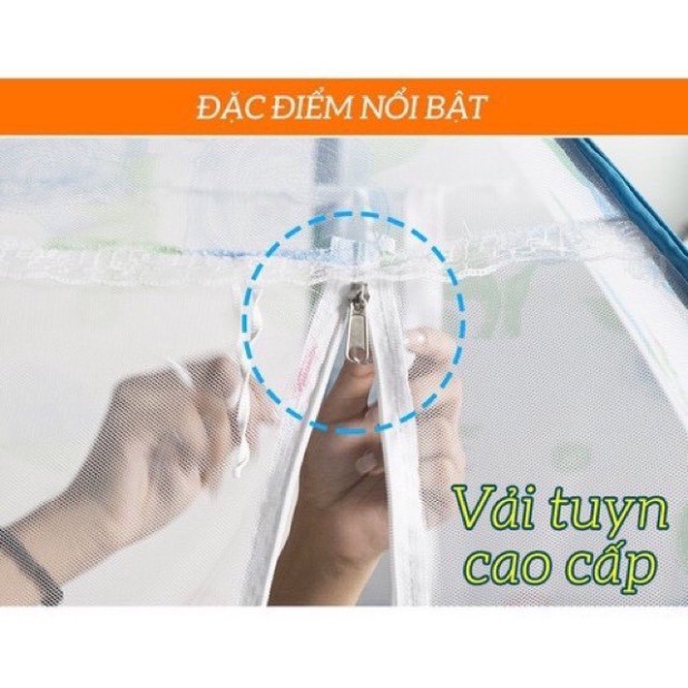 - Màn chụp tự bung có 1 cửa có khóa, giúp ra vào dễ dàng và không bị muỗi xâm nhập, thuận tiện cho quá trình sử dụng.