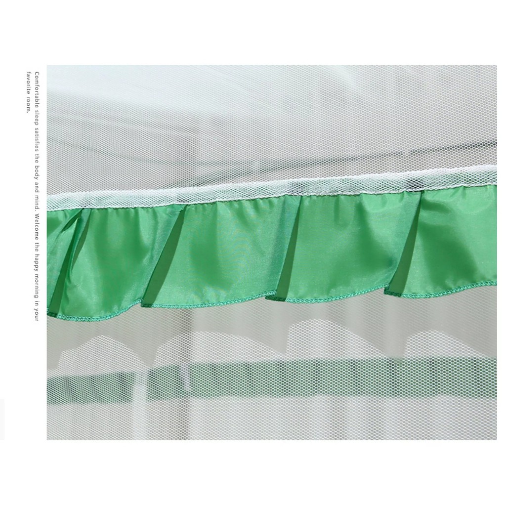 + Màn đỉnh vuông có chân viền bên dưới giúp cho khi ngủ có lỡ để tay gần màn cũng ko bị muỗi chích