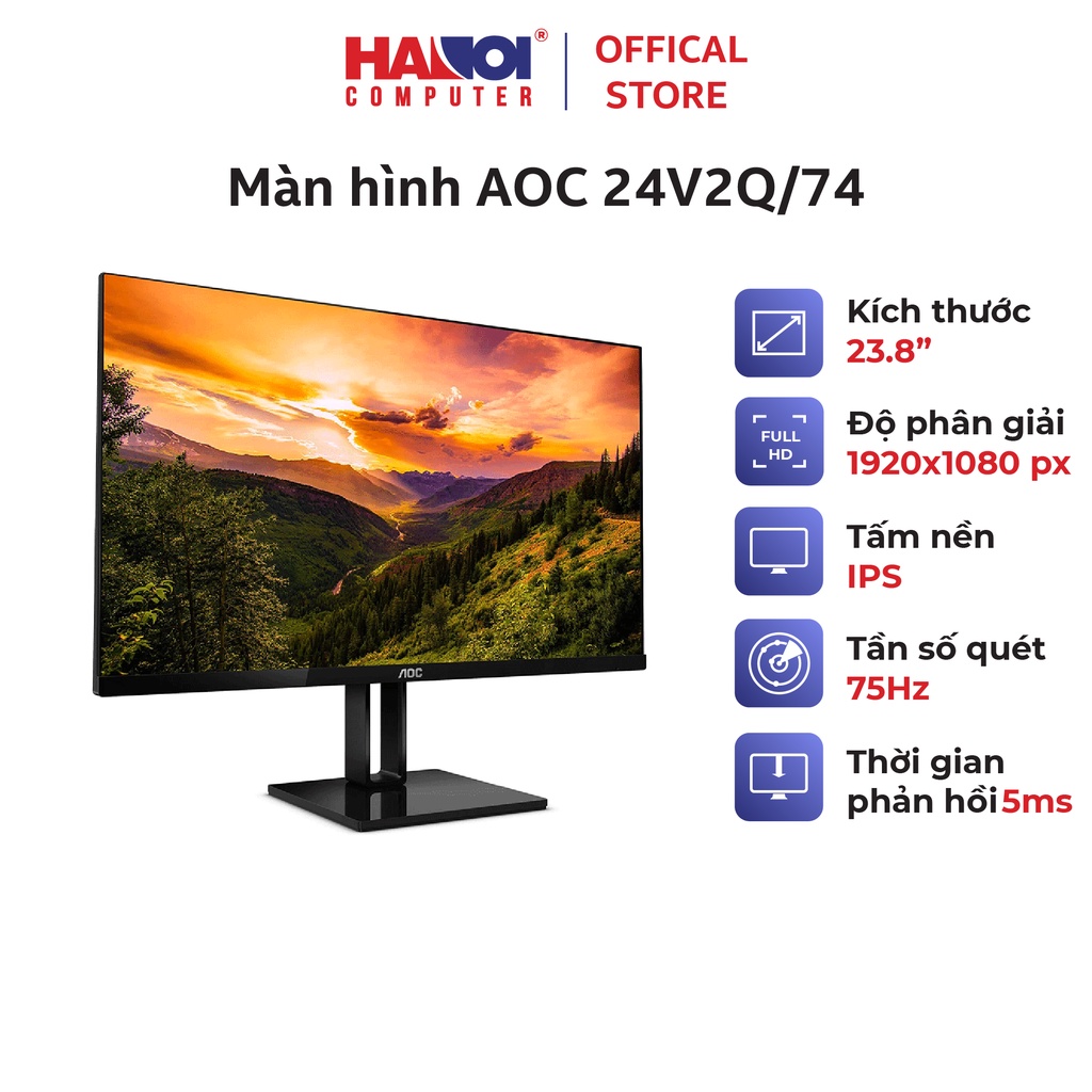 Máy tính & Laptop > Màn Hình || Màn hình AOC 24V2Q/74 (23.8 inch/FHD/IPS/75Hz/5ms/250nits/HDMI+DP)Còn hàng