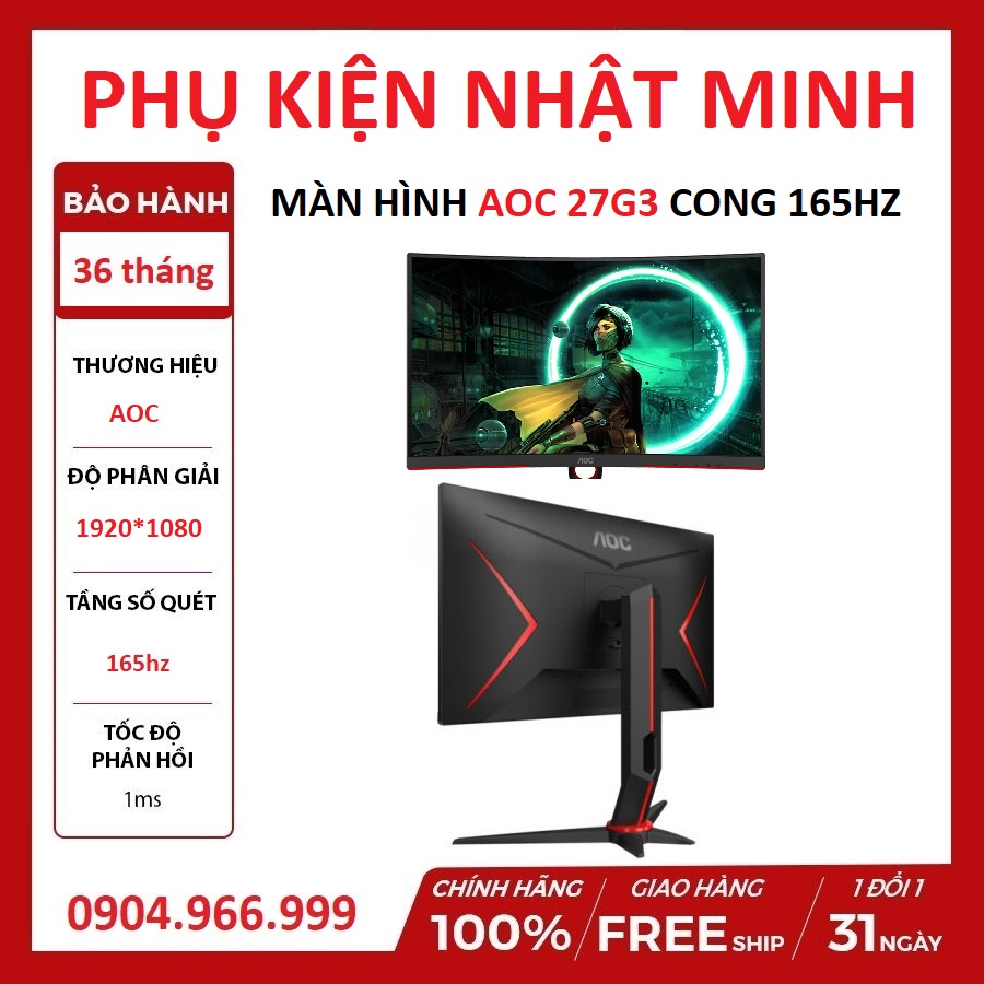 Máy tính & Laptop > Màn Hình || Màn hình AOC C27G3/74 (27 inch/VA/165Hz/1ms/300nits/HDMI+DP+Audio/Cong)Còn hàng