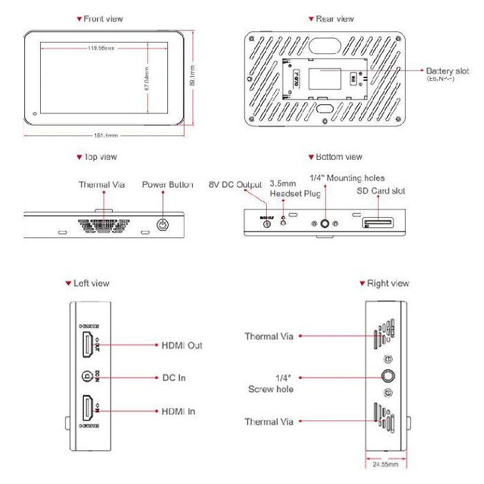 Màn hình Bestview R6 UHB 5.5inch 4K cảm ứng HDR 3D LUT có 5,5 ” độ sáng cực cao màn hình cảm ứng cao đáng kinh ngạc lên đến 2800nits, độ phân giải gốc 1080p cung cấp rõ nét tuyệt vời cho trọng tâm quan trọng và hỗ trợ 4K ngõ vào HDMI và đầu ra lên đến 4096x2160p @ 24Hz. R6 UHB có khung máy nhỏ gọn và nhẹ là lý tưởng để gắn trên máy ảnh để cung cấp màn hình lớn hơn và sáng hơn để theo dõi độ sắc nét và màu sắc của hình ảnh với độ chính xác cao hơn tất cả các màn hình máy ảnh trên bo mạch. Kèm với các tính năng giám sát chuyên nghiệp, chẳng hạn như biểu đồ, dạng sóng, vectorscope, HDR, 3D-LUT và v.v…THÔNG SỐ KỸ THUẬT:
