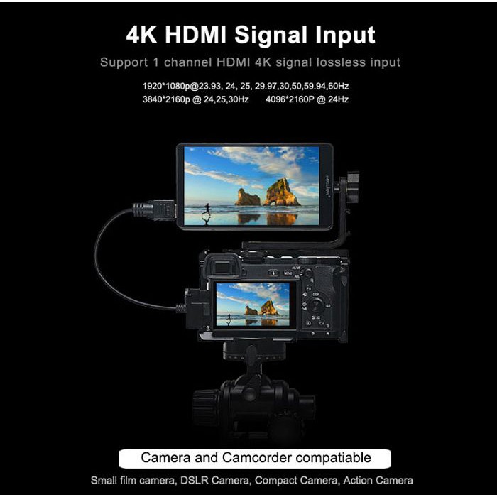 Màn hình Bestview S5 5.5inch FULL HD/4K cổng HDMI là màn hình trường siêu mỏng và nhẹ được thiết kế theo thời trang tối tân được sử dụng với màn hình OCR và có tín hiệu HDMI 4K. Các điểm đặc biệt của Bestview S5 5.5inch được trang bị với các kiện phụ kiện như: Khung hình chữ L, cáp bộ đổi nguồn d-tap, màn hình nhỏ cầm bên ngoài hộp tay, v.v. Làm cho nó dễ dàng hơn cho người sử dụng để sử dụng của chúng tôi, tôi màn hình. Giám sát toàn màn hình cho bộ ổn định và thuận lợi cho các nhà làm phim và video chuyển đổi giữa các cảnh một cách dễ dàng.THÔNG SỐ KỸ THUẬT: