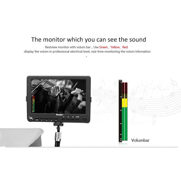 Màn hình Bestview S7 7inch FULL HD/4K cổng HDMI với cổng kết nối HDMI vào và ra, màn hình được thiết kế nhỏ gọn, rất nhẹ, kích thước 7 inch hiển thị màu sắc sinh động, hình ảnh sắc nét mang lại cho bạn trải nghiệm sử dụng tuyệt vời. Màn hình trường 4K HDMI 7 inch sử dụng độ phân giải cao IPS 1920 * 1200 Công nghệ màn hình cứng góc nhìn rộng (Độ phân giải vật lý: 1920 * 1200). Hỗ trợ hoàn hảo mọi định dạng tín hiệu, tương thích với hầu hết các loại máy quay camera chuyên nghiệp trên thị trường.THÔNG SỐ KỸ THUẬT: