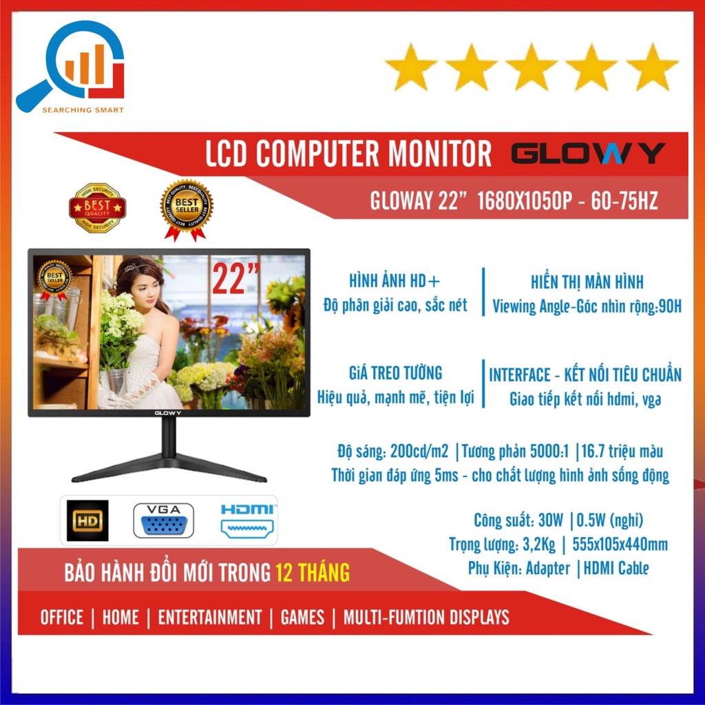 Màn hình chính hãng Gloway 22". Mới 100%, Bảo hành 2 năm !!!