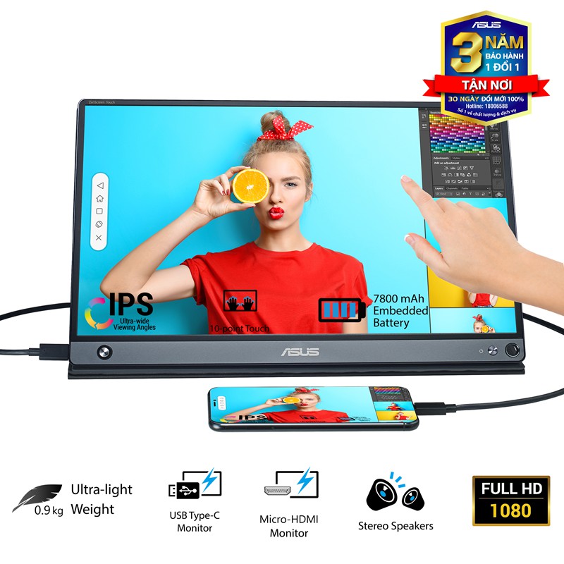 -Màn hình IPS di động Full HD 15,6 inch với kích thước siêu mỏng 9mm và khối lượng chỉ 0,9 kg