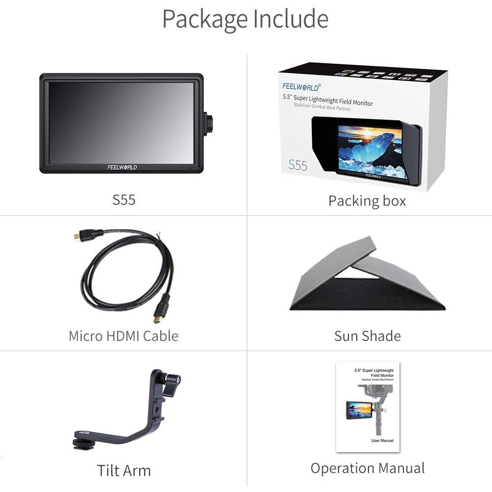 - FeelWorld S55 5.5" Lightweight HDMI Monitor with 4K Input/Output;