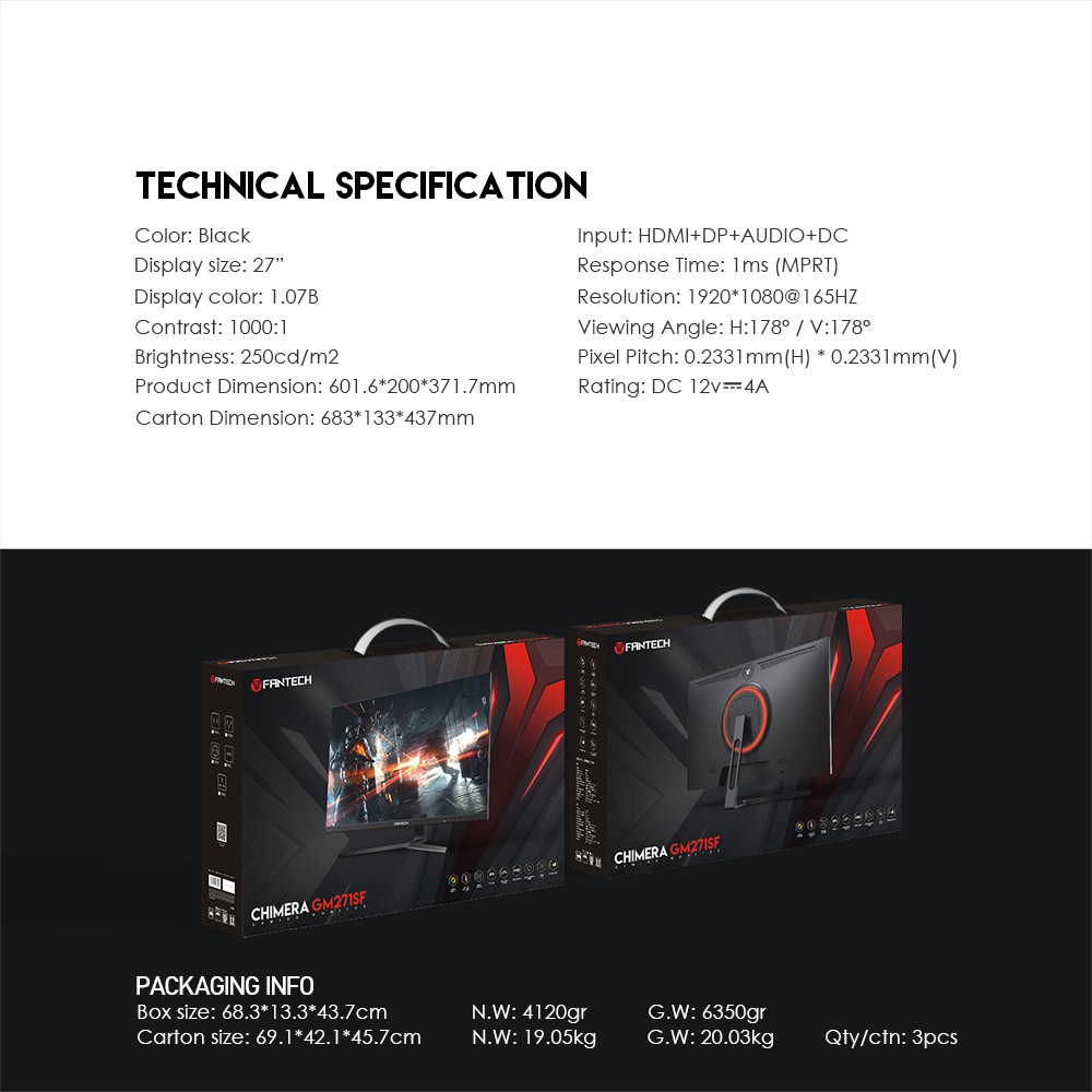 Màn Hình Gaming Fantech GM271SF CHIMERA Tấm Nền IPS Màu Sắc sRGB Tần Số Quét 165Hz - Hãng Phân Phối Chính Thức