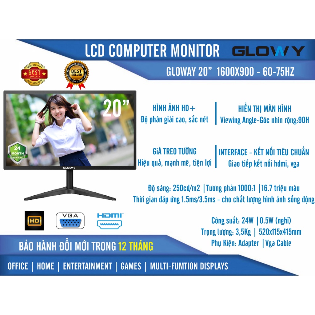 Máy tính & Laptop > Màn Hình || [Mã 273ELHA100K0 hoàn 7% đơn 500K] Màn Hình GLOWAY 24", 22", 19", 17" inch Mới 100% - Bảo hành 24 tháng !!!Còn hàng