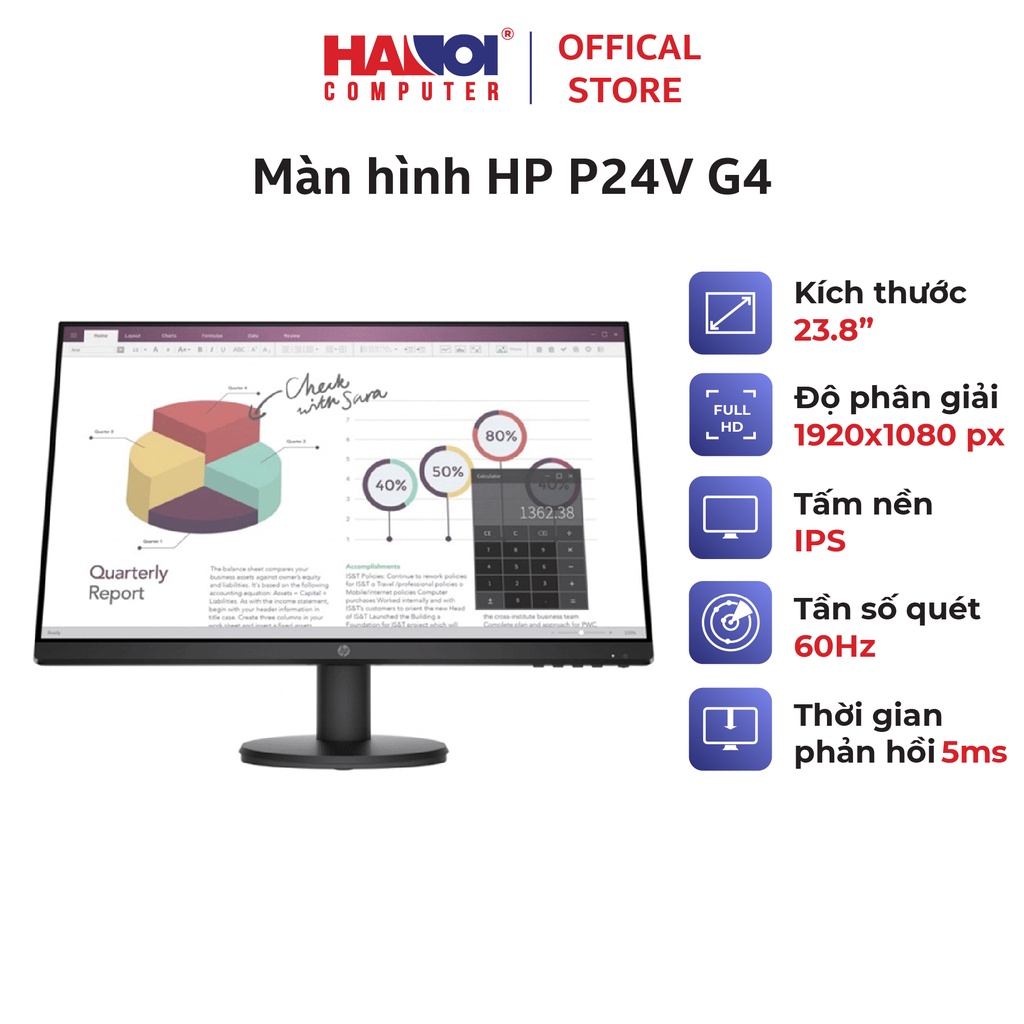 Máy tính & Laptop > Màn Hình || Màn hình HP P24V G4 (23.8inch/FHD/IPS/60Hz/5ms/250nits/HDMI+VGA)Còn hàng
