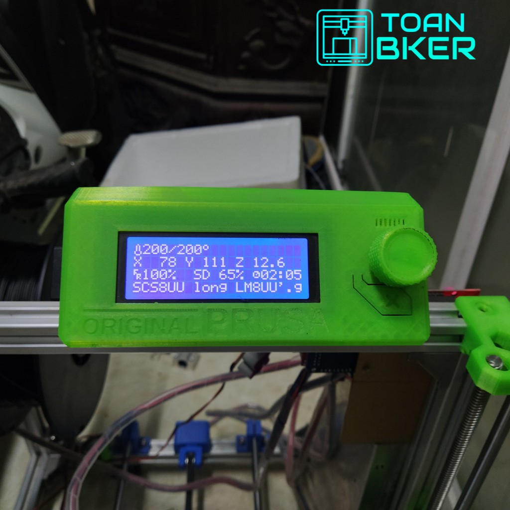 Màn hình LCD 2004 điều khiển máy in 3d-LCD controllerBỏ qua các thông số lằng nhằng mà mình sẽ ko nhắc tới ở đây vì chẳng ai đọc. Màn hình LCD 2004 là 1 phụ kiện dành cho máy in 3d. Không có cũng không sao nhưng sẽ khá bất tiện, vì nếu không có thì muốn in cái j thì phải kết nối liên tục với máy tính để nhận lệnh cho đến tận khi in xong. Còn nếu bạn tích hợp 1 màn hình điều khiển máy in này vào thì công việc sẽ khá đơn giản, chạy phần mềm trên máy tính để tạo được 1 chương trình in, cho vào theo nhớ, khởi động chương trình rồi vác máy đi chơi LOL cho đến khi in xong. Ngoài ra thì thêm cái màn hình vào tự dưng cái máy của mình nhìn chuyên nghiệp hơn hẳn, người ngoài ko biết j nhìn vào thấy pro vl