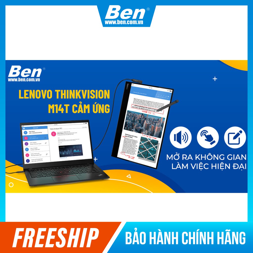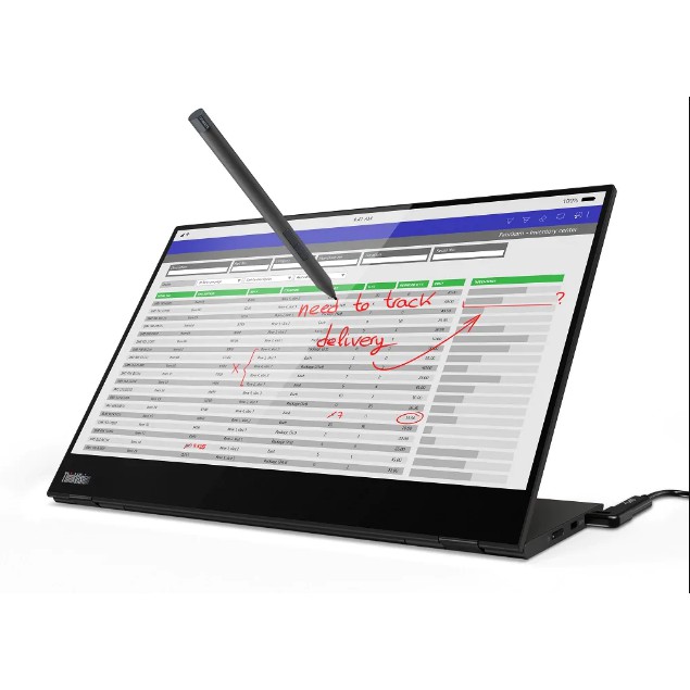 Thiết kế Lenovo ThinkVision M14T tối ưu mỏng gọn linh hoạtĐộ linh hoạt và tương tác giữa màn hình mà công việc được tăng lên khi chức năng cảm ứng được Lenovo ThinkVision M14T coi là phần thiết yếu. Cảm ứng nhạy bén cùng việc cung cấp bút cảm ứng đặt riêng biệt giúp công việc trở nên nhẹ nhàng và hiện đại hơn. Bút đi kèm của ThinkVision M14t có độ nhạy giúp các thao tác vẽ, phác thảo, điều hướng luôn chính xác. Bạn dễ dàng note lại ý kiến, chỉnh sửa thiết kế hoặc dự án chỉ với 1 thao tác, giúp tạo ra môi trường linh động và hiện đại với cổng hỗ trợ USB-C khi kết hợp các thiết bị tương thích.