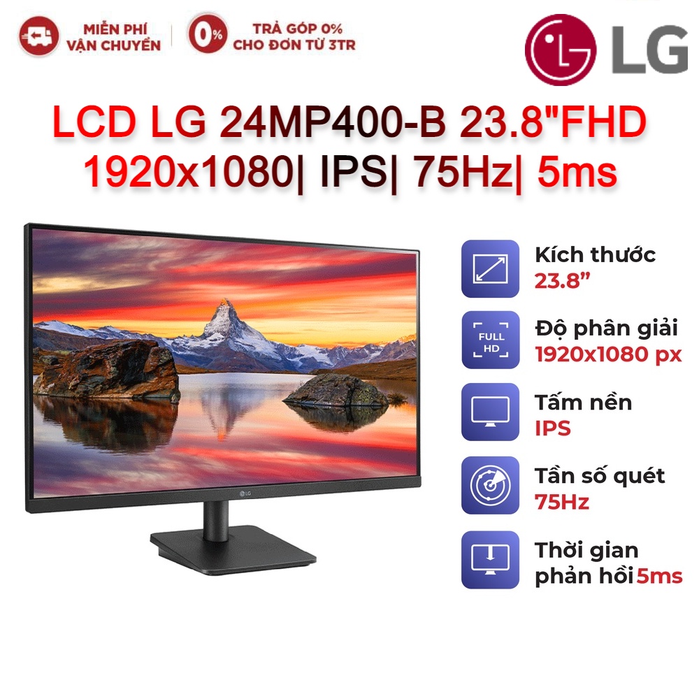 Máy tính & Laptop > Màn Hình || Màn hình LG 24MP400-B (23.8inch/FHD/IPS/75Hz/5ms/250nits/HDMI+DSub/Freesync)Còn hàng