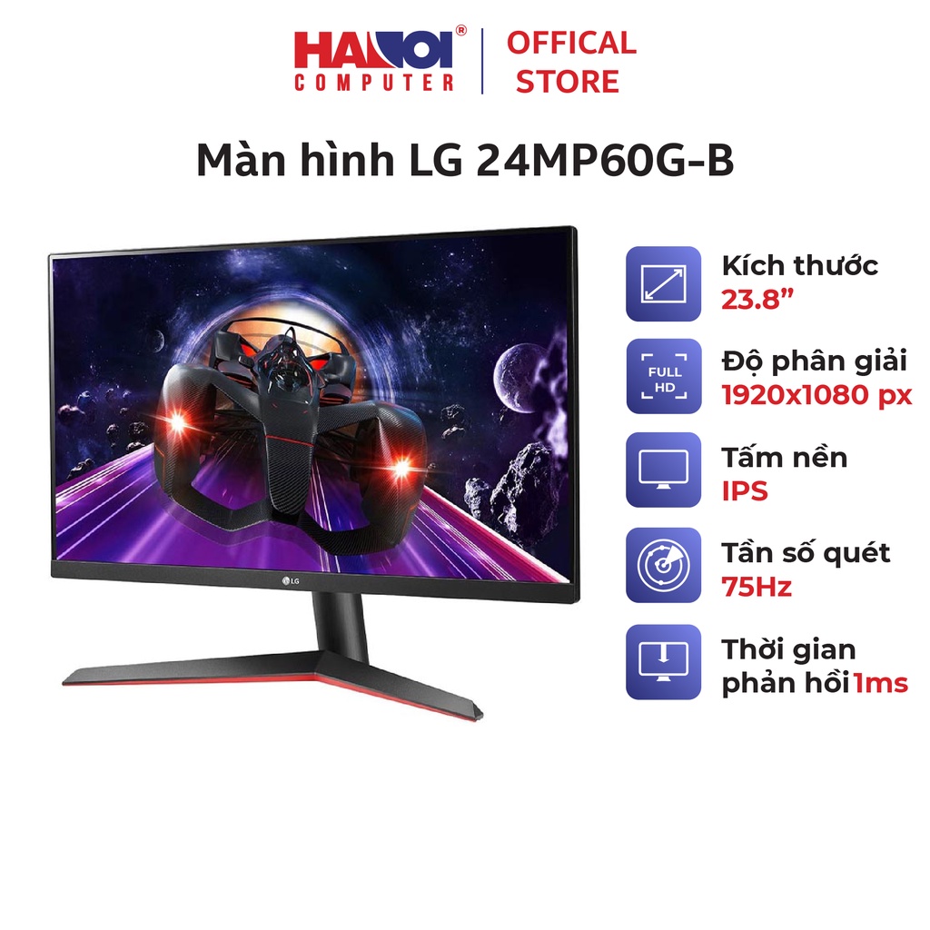 Màn hình LG 24MP60G-B (23.8inch/FHD/IPS/75Hz/1ms/200nits/HDMI+Dsub+DP+Audio/Freesync)