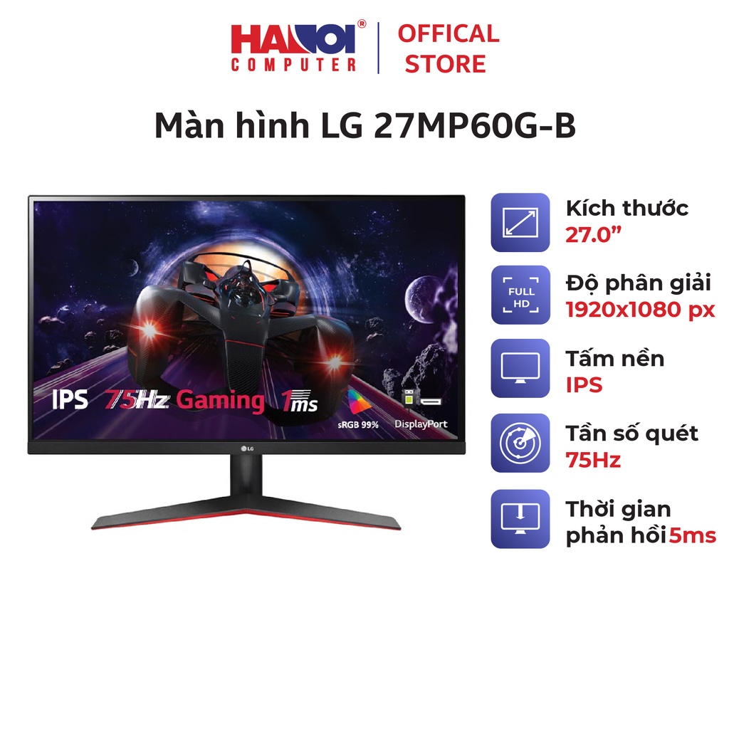 Màn hình LG 27MP60G-B (27inch/FHD/IPS/75Hz/5ms/250nits/HDMI+DP+Dsub+Audio/Freesync)
