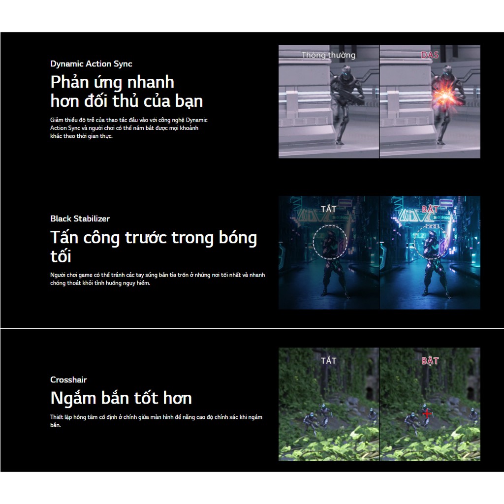 🔹Tính năng đặc biệt: HDR ; G-Sync/Freesync; Flicker Safe; DAS; Crosshair®; Reader Mode; OnScreen 🔹Control; Color Calibrated; Black Stabilizer®; Chân đế Ergo