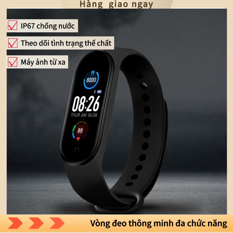8. Các chức năng khác: đếm bước chân, quãng đường, calo, nhắc cuộc gọi, SMS , nhắc nhở nhỏ tập thể dục, theo dõi giấc ngủ, đồng hồ báo thức, camera từ xa; Đưa tay lên màn hình sáng , chống bị mất, Bluetooth, chống nước IP67.