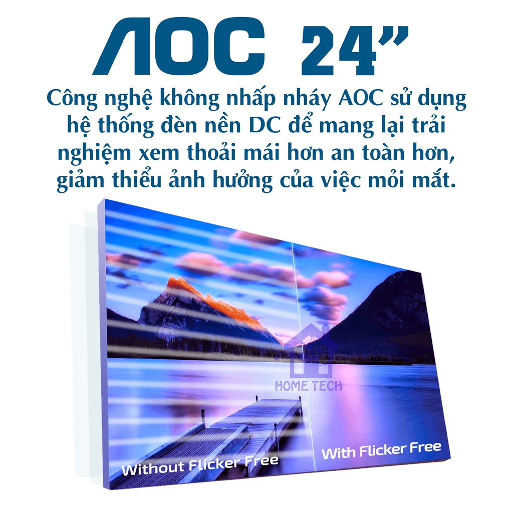 Công nghệ không nhấp nháy giảm nhấp nháy mang lại cho bạn trải nghiệm chơi game thoải mái hơn. Màn hình có đèn nền LED thông thường điều chỉnh độ sáng bằng PWM), gây nhấp nháy và dẫn đến khó chịu cho mắt trong thời gian dài. Công nghệ không nhấp nháy AOC sử dụng hệ thống đèn nền DC (Dòng điện Trực tiếp) để mang lại trải nghiệm xem thoải mái hơn an toàn hơn, giảm thiểu ảnh hưởng của việc mỏi mắt.