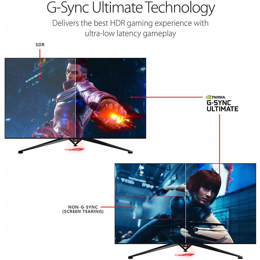 Tình năng nổi bật : Chứng nhận DisplayHDR1000 ™ , Độ bão hòa màu: 95% DCI-P3 , Công nghệ NVIDIA G-SYNC ULTIMATE , Công nghệ ASUS SonicMaster , công nghệ Quantum-dot, hỗ trợ VRR đối với Xbox One , Công nghệ chiếu sáng ASUS Aura Sync , có điều khiển