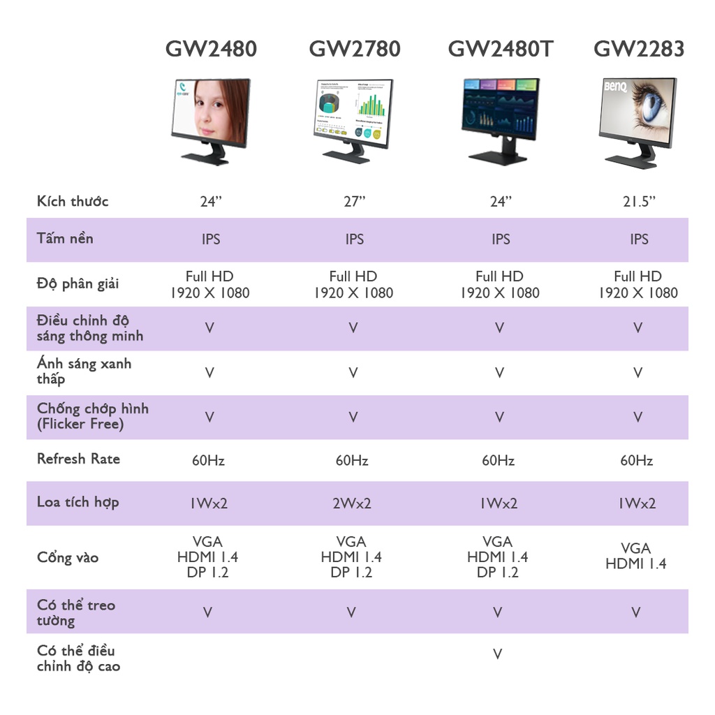 ⭐ Màn hình máy tính BenQ GW2480 24 inch IPS 1080p Full HD HDMI LED Bảo vệ mắt, thích hợp làm việc văn phòng, học online & giải trí tại gia! ⭐🔴 THÔNG SỐ KỸ THUẬT & TÍNH NĂNG CHÍNH 🔴